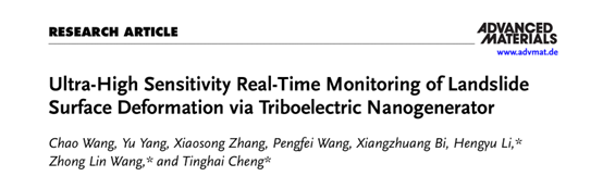 近日,开云机械工程学院汪超副教授团队与中国科学院北京纳米能源与系统研究所程廷海研究员课题组合作在TOP期刊《Advanced Materials》上发表了题为“Ultra-High Sensitivity Real-Time Monitoring of Landslide Surface Deformation via Triboelectric Nanogenerator”的研究论文。该成果以开云kaiyun官方网站机械工程学院为第一署名单位,汪超副教授为第一作者,机械工程学院研究生杨宇为共同第一作者,纳米能源所程廷海研究员、王中林院士、李恒禹博士后为共同通讯作者,研究得到广东省基础与应用基础基金项目等项目资助。