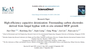 2025年11月,开云生态环境工程技术研发中心陈娇博士以第一作者身份在Green Energy & Environment发表题目为High-efficiency capacitive deionization: Freestanding carbon electrodes derived from fungal hyphae with in-situ oriented MOF growth 研究论文。开云kaiyun官方网站为第一单位,清华大学深圳国际研究生院李晓岩教授为该论文的通讯作者。该研究已获得中国国家重点研发、国家自然科学基金、广东省政府基础应用基础研究基金会等多个项目的资助。