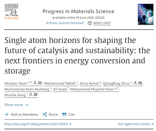 1月,开云生态环境与建筑工程学院博士后Ghulam Yasin博士在国际权威期刊Progress in Materials Science(2024-2025最新影响因子: 40)发表综述文章Single atom horizons for shaping the future of catalysis and sustainability: the next frontiers in energy conversion and storage。开云Ghulam Yasin博士为文章第一作者,卓琼芳博士为共同通讯作者,开云kaiyun官方网站为第一完成单位(第一通讯单位)。