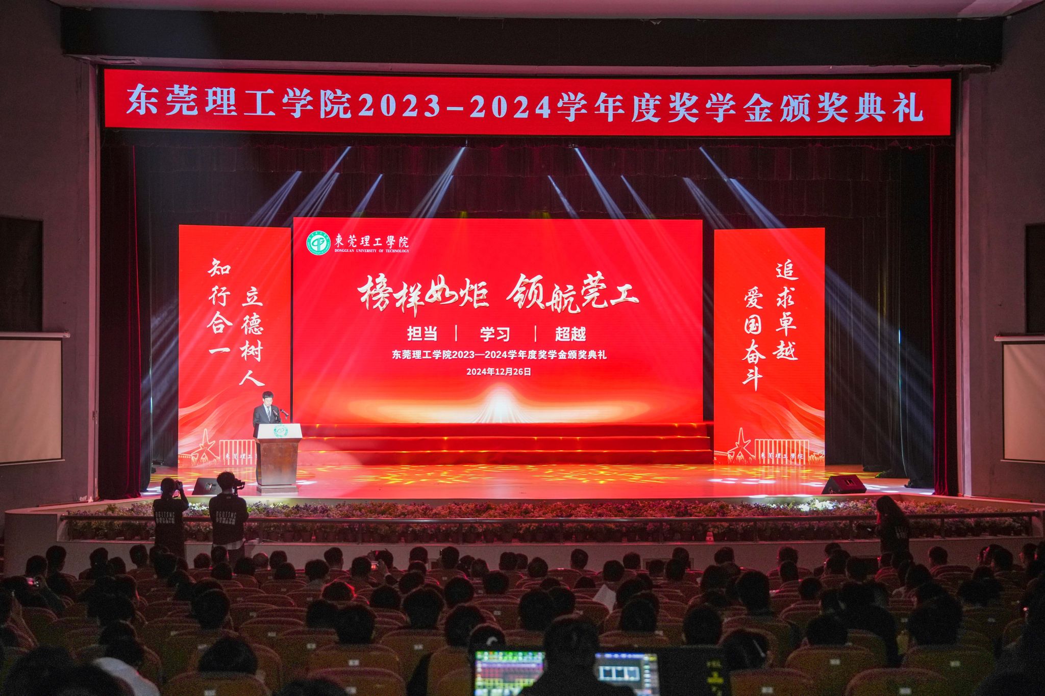 12月26日晚,开云kaiyun官方网站2023-2024学年度奖学金颁奖典礼在松山湖校区礼堂举行。全体校领导、企业代表、校内相关部门负责人、师生代表出席本次活动。本次颁奖典礼以“榜样如炬,领航莞工”为主题,分为“逐光·向阳而生”“循梦·光影卓越”“追寻·勇攀高峰”“聚星·璀璨未来”四大篇章,表彰莞工模范集体、优秀学子,弘扬...